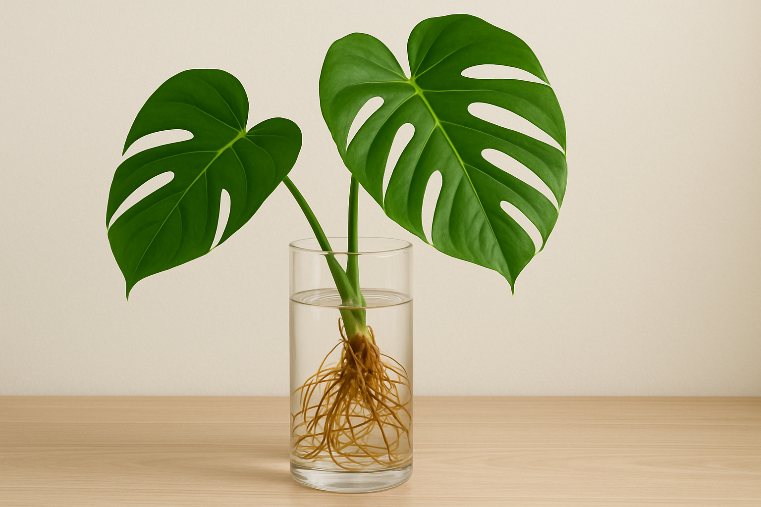 Escolha uma muda saudável, lave bem as raízes e coloque em um recipiente com água limpa. Prefira locais com luz indireta e mantenha as folhas fora da água.